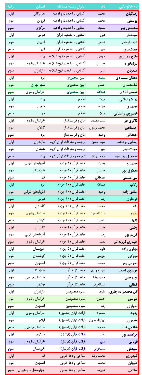 اسامی برگزیدگان کشوری جشنواره قرآن و عترت برادران
