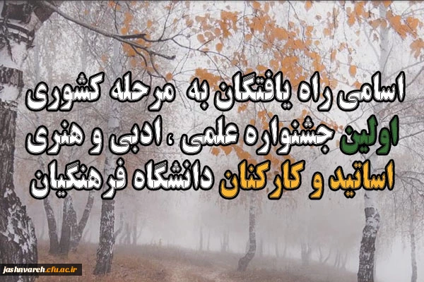اسامی نفرات برگزیده (راه یافتگان به مرحله کشوری) اولین جشنواره علمی ، ادبی و هنری اساتید و کارکنان دانشگاه فرهنگیان